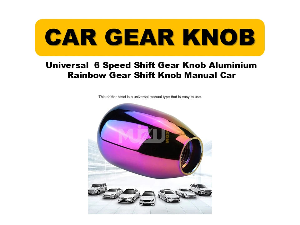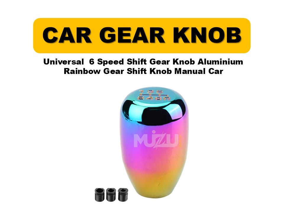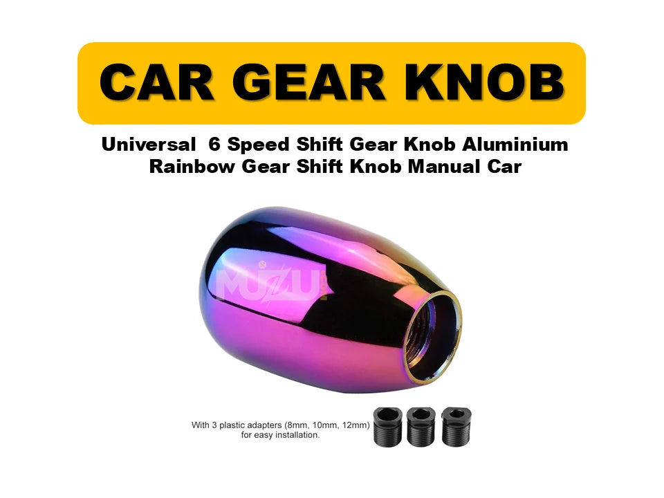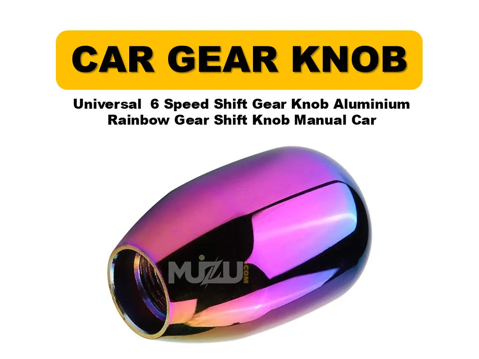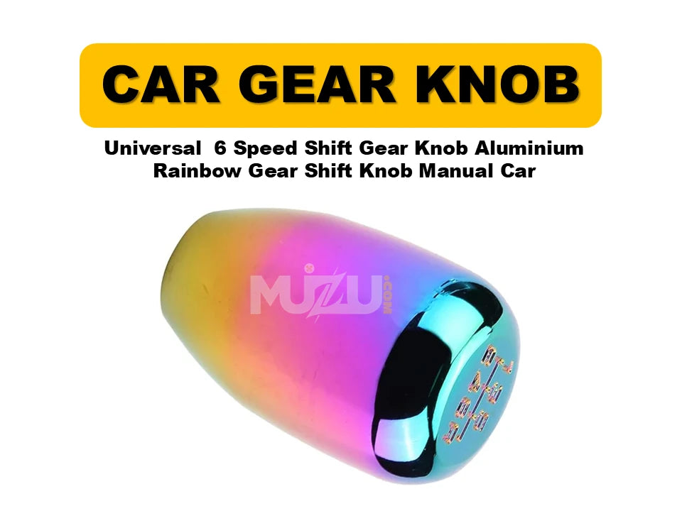 Bring a bold and stylish upgrade to your car’s interior with the Universal 6-Speed Aluminium Rainbow Gear Shift Knob. Crafted from high-quality aluminum, this knob not only delivers a unique rainbow finish but also enhances your driving grip and comfort. Perfect for manual transmission vehicles, it adds a sporty and colorful touch to your car.