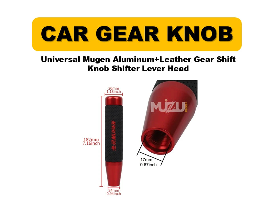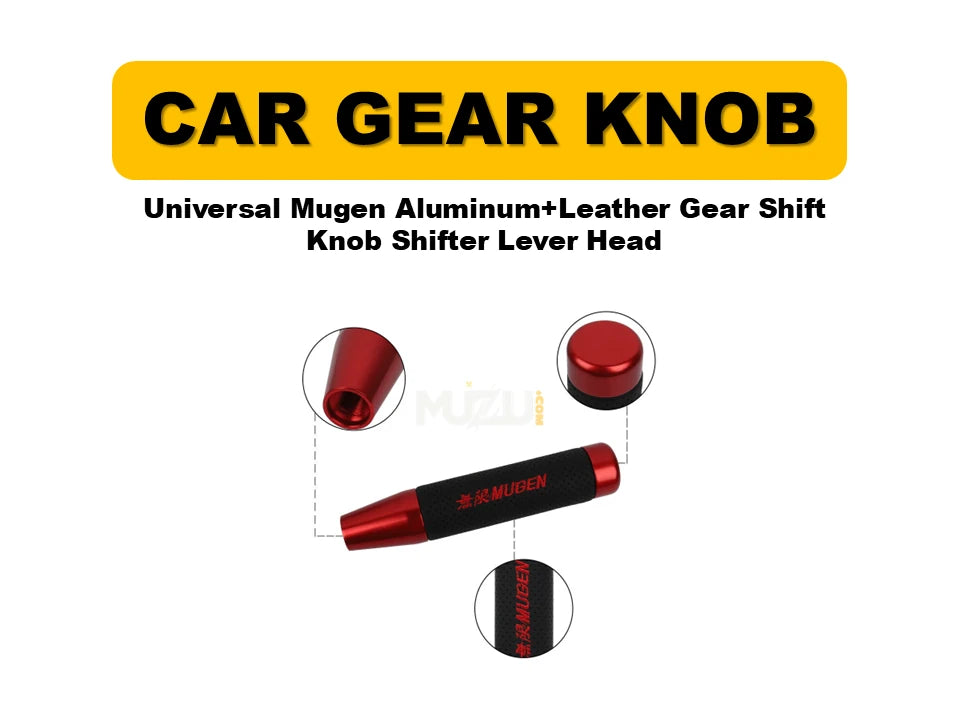 Universal Mugen Aluminium + Leather Gear Shift Knob – Shifter Lever Hea