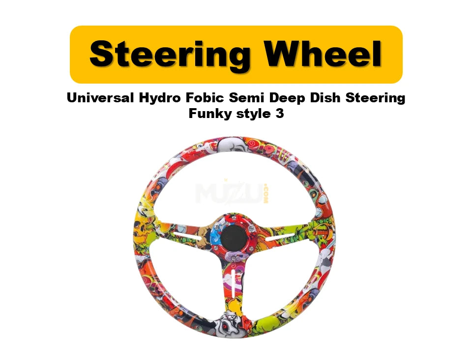Add personality and performance to your car with the Universal Hydro Fobic Semi Deep Dish Steering Wheel – Funky Style 3. Designed for drivers who love unique interiors, this steering wheel combines a bold funky style with sporty performance.