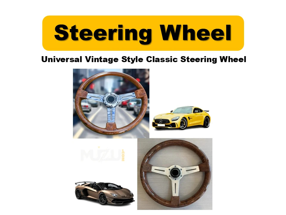 Universal Vintage Style Classic Wood Steering Wheel – Polished Sports Design